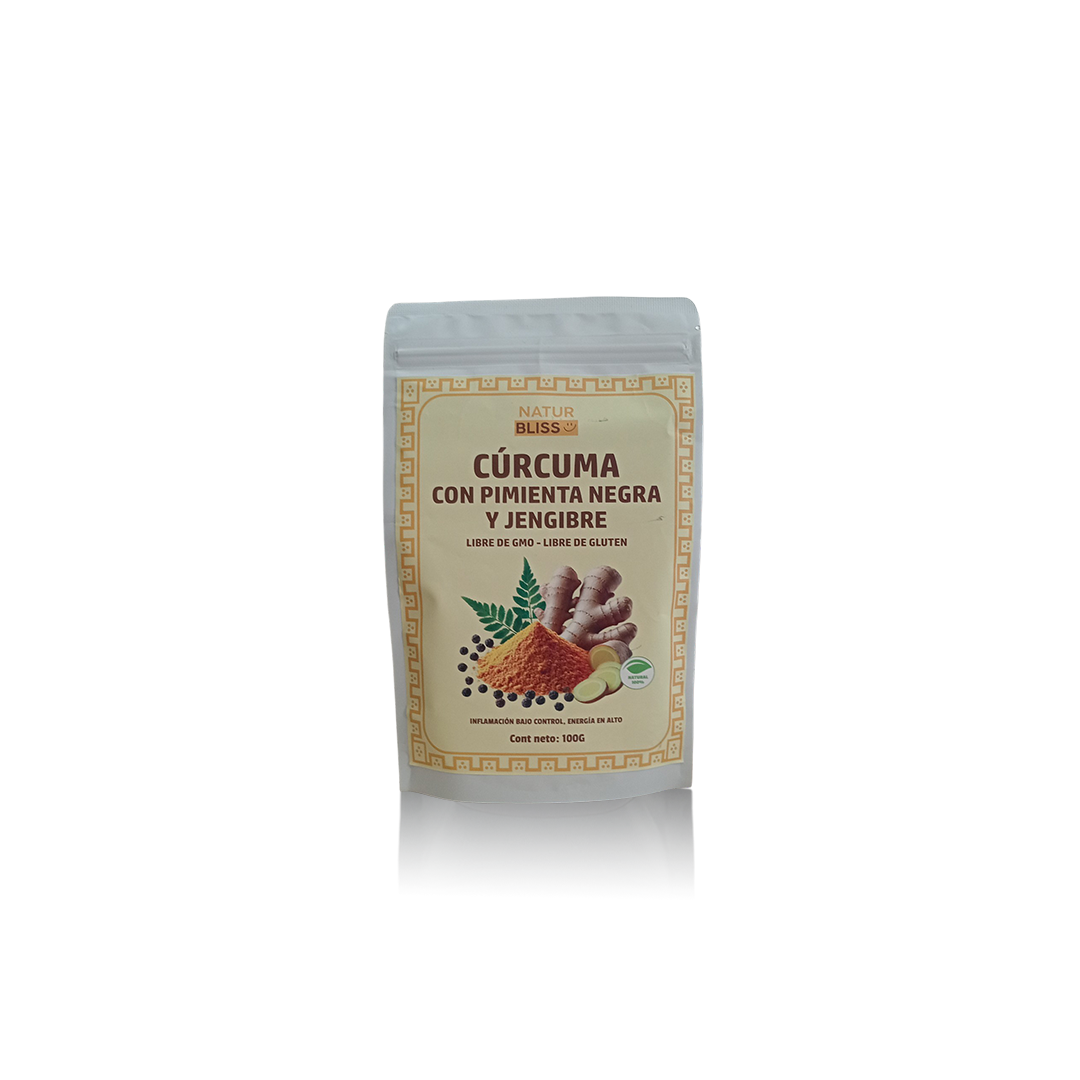 La cúrcuma con pimienta negra y jengibre es una mezcla natural con propiedades antiinflamatorias y antioxidantes. Se utiliza para fortalecer el sistema inmunológico, mejorar la digestión y apoyar la salud general del organismo.